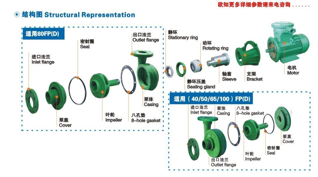 FP-D型耐腐蝕工程塑料離心泵均采用機械密封,并引進國際先進工藝和技術(shù)配方,使用FR-PP(增強聚丙烯--改性工程塑料)作為泵體的材料一次注塑成型,在同系列的塑料泵產(chǎn)品中,充分顯示了其結(jié)構(gòu)先進、重量輕、體積小、壽命長的特點。