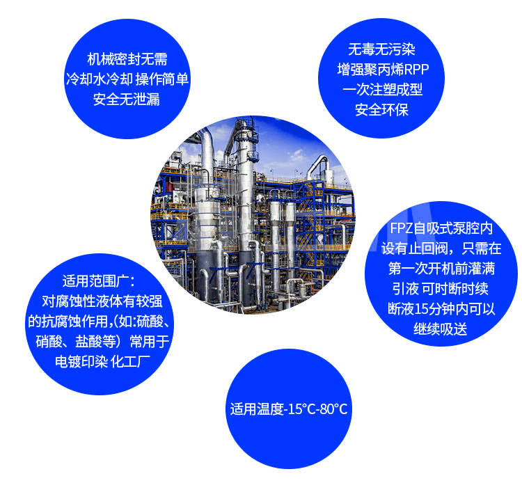 廣泛應(yīng)用于化工、食品、制藥、電鍍、造紙、環(huán)保、水處理等部門,輸送酸、堿、鹽等腐蝕性液體。