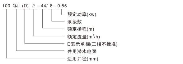 井用潛水泵型號意義: