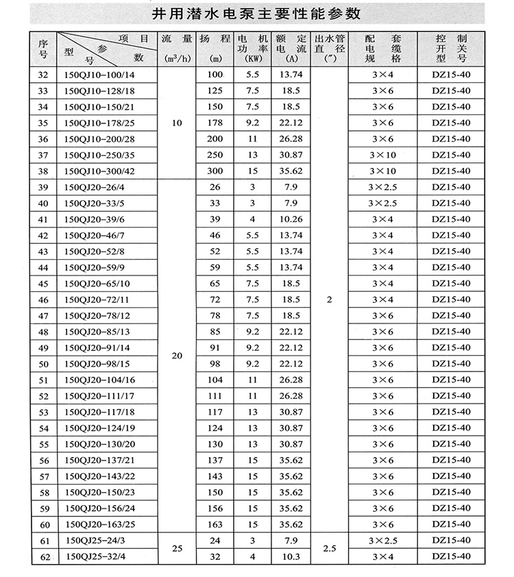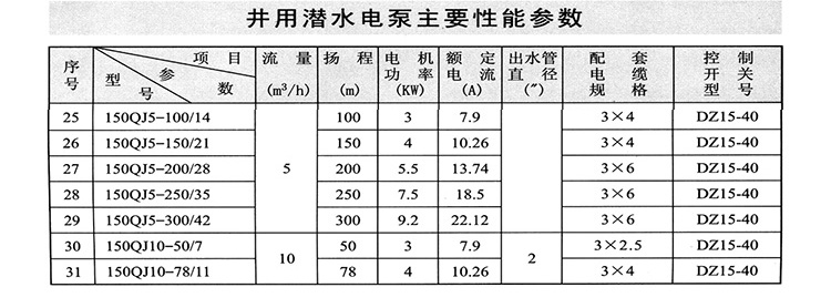 150QJ深井泵主要用于深井提水、增壓,它廣泛適用于農(nóng)田灌溉、城鄉(xiāng)生活區(qū)、工礦企業(yè)給排水、建筑工程降水、河流、水庫(kù)、噴泉、制冷系統(tǒng)、溫泉浴場(chǎng)、綠化等各種水利工程設(shè)施。其主要特點(diǎn)是電機(jī)和水泵連為一體潛入水中工作,具有使用、安裝、維護(hù)方便、根據(jù)不同要求,可提供不銹鋼鑄造、不銹鋼沖壓焊接、鑄銅、鑄鐵等不同材質(zhì)。該水泵對(duì)外徑具有嚴(yán)格限制,為水潤(rùn)滑,不會(huì)出現(xiàn)電機(jī)密封泄露,污染水源的情況。