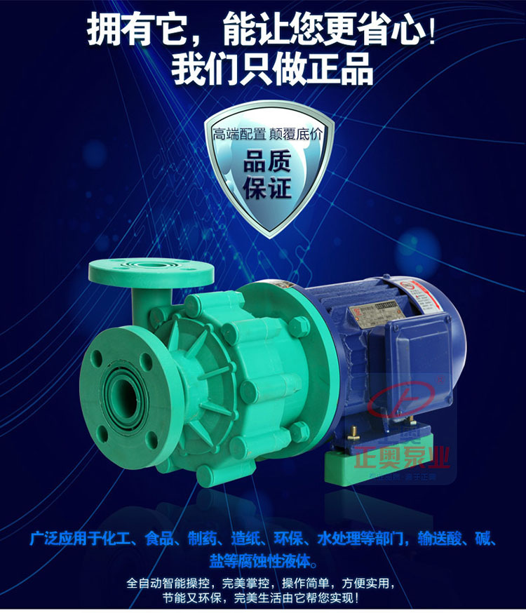 塑料泵廣泛應(yīng)用于化工、食品、釀造、制藥、電鍍、造紙、環(huán)保、水 處理等部門,輸送酸、堿、鹽等腐蝕性液體。
