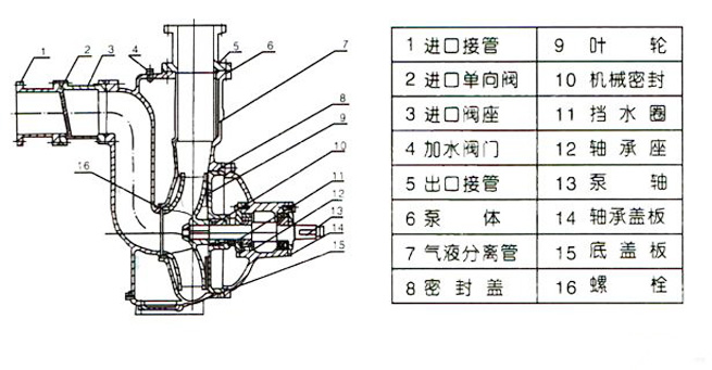 2、高效節(jié)能:采用優(yōu)秀水力模型,效率比一般自吸泵高3~5%。
