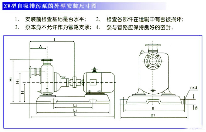 ZW型自吸式無堵塞排污泵既可象一般清水自吸泵那樣不需安裝底閥,不需灌引水,又可抽吸含有大顆粒固體直徑為出口口徑的60%和纖維長度為葉輪直徑1.5倍的污物、沉淀物、廢礦雜質、糞便處理及一切工程污水物和膠質液體,完全減輕人力的勞動強度,而且安裝使用方便,極少維修,性能達到國際先進水平,具有廣闊的應用市場和發(fā)展前景