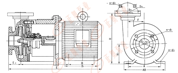 PF型強耐腐蝕塑料離心泵為直聯(lián)式結構,由泵體及托架與電機法蘭聯(lián)接,托架支承泵體,葉輪通過軸與電機直聯(lián)。該系列泵的特點:結構簡單緊湊、零件少、性能好。