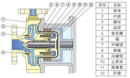 磁力泵以靜密封取代動(dòng)密封,使泵的過(guò)流部件處于完全密封狀態(tài),底徹解決了其他泵機(jī)械密封無(wú)法避免的跑、冒、滴之弊病。磁力泵選用耐腐蝕、高強(qiáng)度的工程塑料、鋼玉陶瓷、不銹鋼等作為制造材料,因此它具有良好的抗腐蝕性能,并可以使被輸送介質(zhì)免受污染。