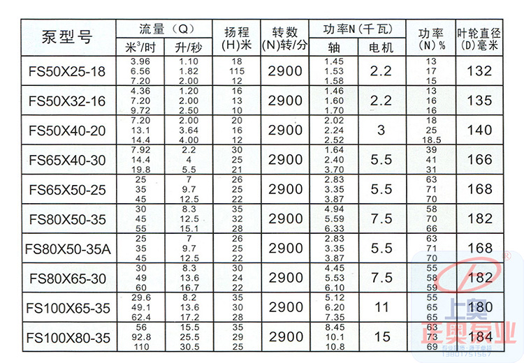 七、FS型玻璃鋼化工泵參數(shù)選型: