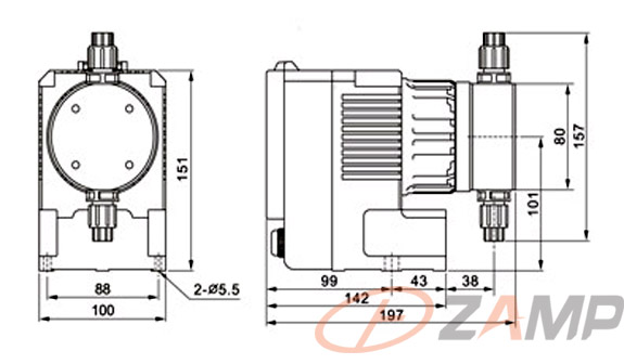 電磁計量泵是利用電磁推桿帶動隔膜在泵頭內(nèi)往復運動,引起泵頭膛腔體積和壓力的變化,壓力的變化引起吸液閥門和排液閥門的開啟和關閉,實現(xiàn)液體的定量吸入和排出。