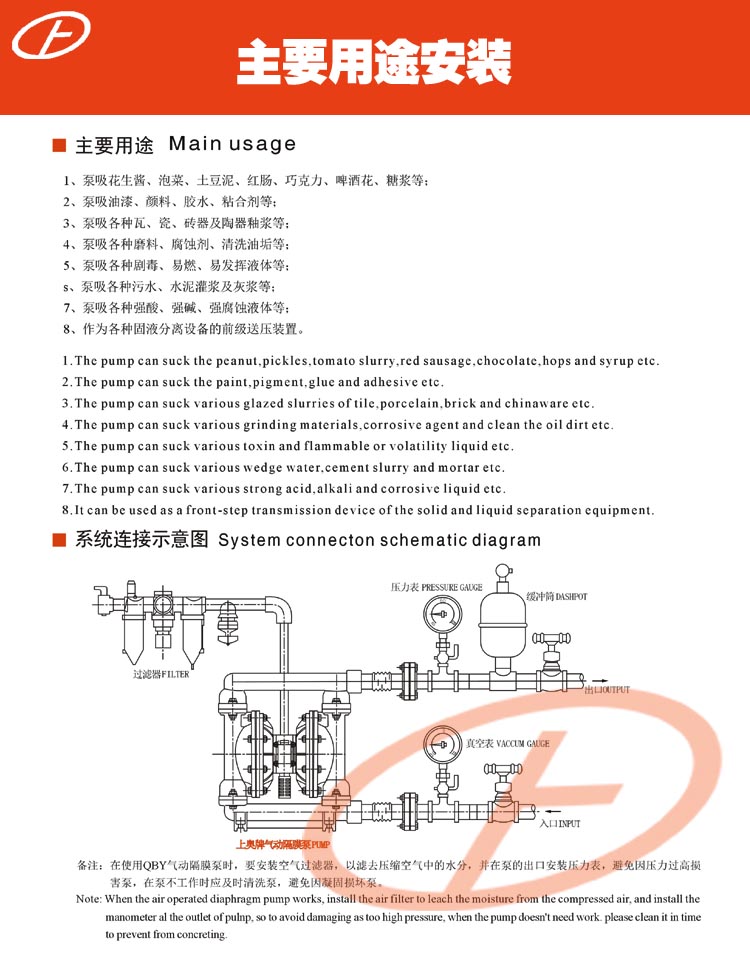 上海正奧泵業(yè)有限公司2012年設(shè)計(jì)部對(duì)QBY氣動(dòng)隔膜泵的外形進(jìn)一步改進(jìn),機(jī)械外觀更加完美;并對(duì)性能的進(jìn)一步加強(qiáng),效率更高;正奧公司而且熟練的掌握QBY氣動(dòng)隔膜泵生產(chǎn)工藝使價(jià)格更加優(yōu)惠是低于同行業(yè)價(jià)格的10%-30%直銷。歡迎選擇上奧牌氣動(dòng)隔膜泵。
