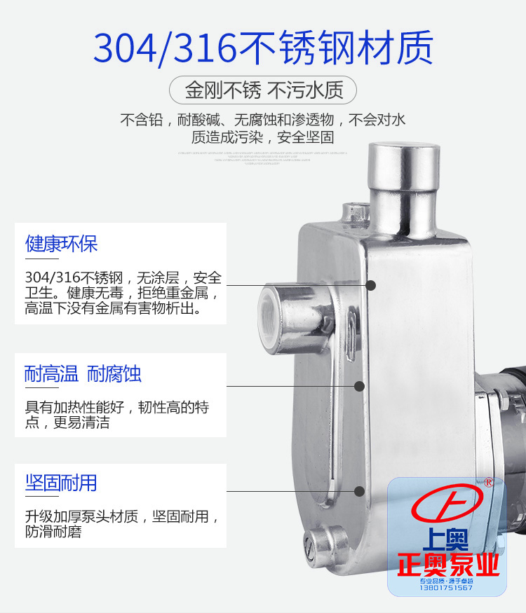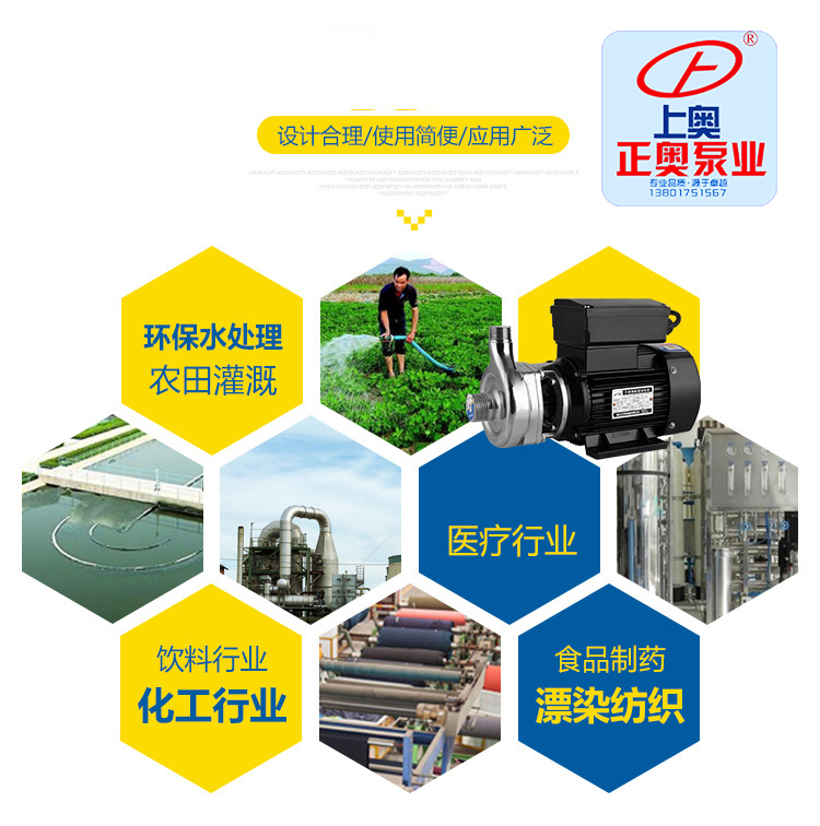 不銹鋼自吸式耐腐蝕離心泵可輸送溫度不高于103℃,含有細小軟顆;蚶w維質,帶腐蝕性或有衛(wèi)生要求的液體,廣泛適用于食品、飲料、醫(yī)藥、污水處理、化工、電鍍、漂染、精細化工等行業(yè)使用。