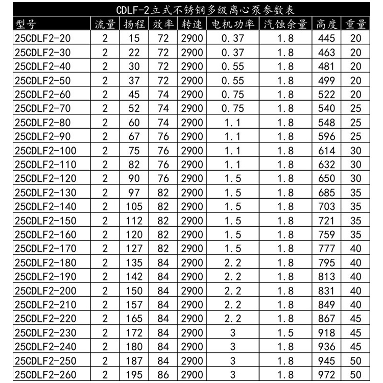 CDLF-2不銹鋼立式多級泵性能參數(shù)選型: